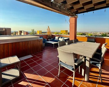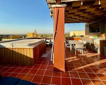 La azotea es privada, totalmente equipada con parrilla, muebles y jacuzzi con vista al jardín principal. Los atardeceres aquí son hermosos.
