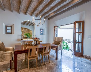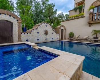 Entra, y te reciben techos altísimos con vigas decorativas, intrincados detalles de pintura y pisos de mármol relucientes que hacen eco de la elegancia del patrimonio arquitectónico de San Miguel de Allende. Los acentos de piedra de Cantera agregan un toque de sofisticación clásica, mientras que el plan de planta abierto crea una sensación de flujo y amplitud. Ya sea que esté organizando una cena animada o disfrutando de una noche tranquila, esta casa está diseñada para adaptarse a cada estado de ánimo y ocasión.