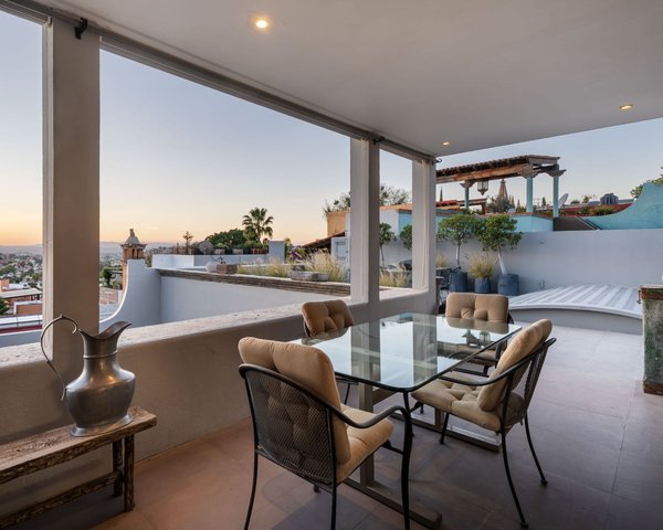 Casa Marcia – Un Elegante Santuario en el Corazón de San Miguel Perfectamente ubicada entre el Parque Juárez y la icónica Parroquia, Casa Marcia ofrece lo mejor de la vida en San Miguel. Esta refinada residencia presenta una distribución armoniosa y una paleta neutra en todos sus espacios, realzada por pisos de cantera y amplios ventanales que llenan cada ambiente de luz natural. Diseñada para combinar elegancia y comodidad, es un refugio acogedor tanto para la vida diaria como para recibir con sofisticación. La sala y el comedor formales se conectan de manera fluida con la cocina a través de una bien equipada despensa de mayordomo, mientras que una sala de estar adicional ofrece un espacio relajado desde el cual disfrutar de las tranquilas vistas al patio. Al ascender por una escalera dramática, el segundo nivel alberga tres luminosas recámaras—cada una con su propio baño completo—además de una amplia oficina. La serena suite principal cuenta con chimenea y vistas directas al patio, creando un refugio privado de excepcional tranquilidad. El nivel superior revela un espectacular espacio interior–exterior para vivir y recibir, equipado con baño completo, chimenea y vistas panorámicas hacia el valle y los atardeceres. Un acogedor espacio techado se abre a una gran terraza con vistas icónicas a la Parroquia—un escenario inolvidable tanto para reuniones como para noches tranquilas. Con un garaje, cuarto de lavado independiente y un diseño pensado para el confort y el estilo, Casa Marcia es una joya excepcional en una de las ubicaciones más deseadas del Centro. Esto es vivir San Miguel en su máxima expresión.