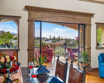 In historic San Miguel de Allende, home values are heavily based upon the walking distance and sightline to the center of town and our iconic Parroquia church. Casa Noche Magica—so named because the entire city skyline and every church magically twinkle at night from every room on the primary living floor—offers both, being an 18-minute walk to the Jardin, our town square. Adjacent to multiple seven-figure homes, it also offers affordability! And the astounding design was by a Parsons School graduate, who happens to be the owner! Offering one-level living, Casa Noche Magica greets visitors with a charming fountain-anchored garden courtyard before passing through a welcoming foyer to arrive in the grand boveda-topped open-plan great room, anchored at one end by a massive hand-carved cantera fireplace, and the primary suite, all on one level. The astounding feature of Casa Noche Magica is that all rooms on the main level offer views of the entire city skyline, including the Parroquia—you’ll even have a Parroquia view while cooking, or upon lifting your head from the pillow! This entire floor opens directly to an extensive covered terrace—dining, living, and sitting area with firepit—all with the same extensive city views. An oversized garage and laundry room complete this level. Downstairs can easily serve as a lock-off two-bedroom casita—complete with living area and kitchenette—because it offers separate access to the locked-access alley walkway behind the home that also doubles as a shortcut to Centro. Ready to be enchanted? Hope on the Magic Bus, or take that Magic Carpet Ride over to see me, you’ll find—like Sting—that Every Little Thing I do is Magic, starting with your home showing! Come back at sunset, we’ll pull out the Empress 108 gin for a Black Magic Cocktail while the ever-changing skyline does its magic on you, you’ll never want to leave! This home is in high demand, tour it with me today!