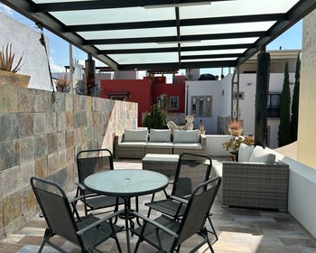 Casa Gamaliel es una hermosa y contemporánea casa de un solo nivel con terraza, situada en el tranquilo y cotizado barrio de El Paraíso. El Paraíso está ubicado en la entrada de San Miguel de Allende, a solo unos pasos de la Avenida Salida a Querétaro. Goza de una ubicación ideal, estando cerca del centro mientras disfruta de la tranquilidad de un barrio periférico. Conocido por su ambiente tranquilo y familiar, el vecindario no solo es muy seguro, sino que también está rodeado de amplia vegetación y áreas para caminar. La casa cuenta con tres amplias habitaciones, cada una equipada con su propio baño y closets. La cocina de diseño abierto se conecta perfectamente con la sala de estar y el comedor, creando un espacio amplio y luminoso con puertas corredizas de vidrio en ambos lados que se abren al patio lateral y trasero. Junto al patio trasero, hay un cuarto de lavado con lavadora y secadora, así como un generoso espacio de almacenamiento. Subiendo las escaleras, encontrará una terraza grande y acogedora con pérgola cubierta. Esta casa es perfecta para aquellos que buscan una residencia de un solo nivel altamente funcional o para personas que buscan invertir en la atractiva comunidad de El Paraíso y embarcarse en un proyecto emocionante. La propiedad tiene un gran potencial de expansión, ofreciendo la oportunidad de agregar otro nivel y/o ampliar la terraza.