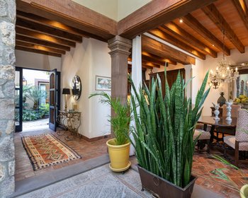 Ubicada en el encantador barrio de la Colonia Caracol y a menos de cinco minutos en coche del Centro, Casa Amma es una casa de tres recámaras y tres baños y medio, cuidadosamente diseñada, llena de suave luz natural y con vistas despejadas de la Parroquia y de la ciudad. Casa Amma se despliega en varios niveles, cada uno creado pensando en la comodidad, la privacidad y una vida armoniosa. La entrada en el primer nivel te recibe con un hermoso pasillo coronado por un techo de bóveda catalana, creando una primera impresión cálida y atractiva. Justo después, una recámara con baño completo funciona perfectamente como un estudio independiente, equipado con cocineta, baño en suite y un amplio clóset. Un espacioso garaje tándem para dos autos, un gran cuarto de lavado y un elevador residencial brindan comodidad en la vida diaria. El segundo nivel cuenta con una acogedora casita con su propia sala, recámara, baño en suite y abundante espacio de almacenamiento. Cruzando un tranquilo pasillo exterior—rodeado de vegetación y el suave sonido de una fuente—se encuentra el corazón de la casa. Aquí, una cocina gourmet bien equipada se abre hacia una sala cálida y llena de luz, junto a la serena recámara principal con baño en suite. Un techo de cristal retráctil ilumina suavemente el espacio, mientras que la calefacción radiante en piso, tanto en la casita como en el área principal, crea una atmósfera de comodidad absoluta. La carpintería a medida refleja un diseño cuidadosamente elaborado. En este mismo nivel hay una terraza exterior privada con hermosas vistas de la ciudad, el lugar perfecto para mañanas tranquilas, conversaciones íntimas o una copa de vino al atardecer. El tercer nivel ofrece una amplia terraza en la azotea con vistas panorámicas de San Miguel de Allende y de la Parroquia. Es un espacio excepcional para convivir, contemplar las estrellas o simplemente detenerse a admirar los inolvidables atardeceres de la ciudad. Casa Amma combina comodidad, diseño inteligente y vistas extraordinarias en una ubicación deseable y tranquila. Haz tuya Casa Amma hoy. The Clark Group en San Miguel de Allende te invita a conocer esta exclusiva propiedad.