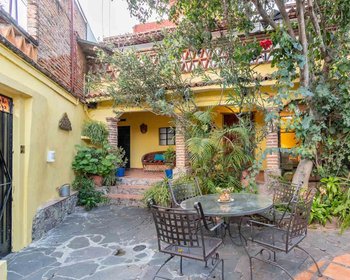 En venta – Propiedad con encanto. Ubicada en uno de los vecindarios más icónicos de San Miguel, esta hermosa propiedad se encuentra en la Colonia San Rafael, con acceso por dos callejones y a solo unos metros de la Avenida Guadalupe y del tradicional Mercado de San Juan de Dios. Su localización privilegiada permite llegar caminando al Centro en pocos minutos. Al ingresar, la casa te recibe con un encantador patio central que cuenta con fuente y jardín, creando un ambiente de tranquilidad y armonía. La casa principal ofrece una acogedora sala de estar, un cuarto de TV, medio baño para visitas y amplias puertas y ventanas que se abren hacia el patio, permitiendo una excelente iluminación natural. La cocina es abierta e integra el comedor, complementada con una hermosa chimenea que añade calidez y carácter al espacio. En la segunda planta se encuentra la recámara principal con baño completo, una habitación para visitas y un cuarto de usos múltiples. Desde esta planta se accede a un balcón y a la terraza, un espacio ideal para disfrutar de vistas panorámicas hacia la iglesia, el Centro y las montañas. Adicionalmente, la propiedad cuenta con un departamento totalmente independiente, con acceso por un callejón distinto, lo que brinda total privacidad respecto a la casa principal. Este departamento dispone de cocina, sala, área de lavado y una recámara en la segunda planta con baño completo, además de su propia terraza independiente. La propiedad está equipada con minisplits en cada habitación y en la sala, garantizando un ambiente confortable durante todo el año. Se vende completamente amueblada y lista para habitar, lo que la convierte en una excelente opción tanto para residencia, casa de descanso o inversión. Una oportunidad única de vivir o invertir en una de las zonas más atractivas y con mayor encanto de San Miguel. ¡Llama hoy para conocer esta propiedad!