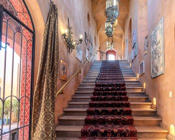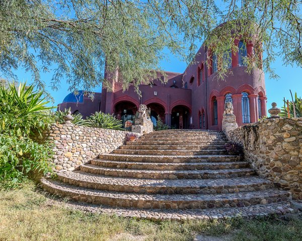 Juntos, un diseñador de joyas de renombre mundial y un famoso arquitecto mexicano diseñaron meticulosamente cada faceta de esta impresionante y "pequeña" casa de Castilla, creando una joya mezclada entre Marruecos y España. Viva en otro mundo con esta extraordinaria fusión de historia arquitectónica marroquí y artesanía mexicana. 'grand sala': habitación delantera con techos tipo pañuelo de 35 pies, ventanas arqueadas de hierro, intrincados trabajos de hierro y una chimenea de cantera (piedra) rosa Rosetta con temática de león. Aquí, adobe acabado a mano definido por sinuosas Las curvas le dan a este estilo arquitectónico único el romance de Marrakech y la mística de la antigua Andalucía. El impresionante comedor de la torre circular brilla con luz filtrada. Encuentre drama y romance en todas partes, donde, por supuesto, los baños son dignos de una reina amable: es una visita obligada a la pequeña Castilla para comprender la elegancia espacial y el acabado a mano en todas partes, creando una propiedad única en un millón. Ubicado a solo 10 minutos en auto del centro histórico de San Miguel de Allende, y directamente frente a uno de los principales centros ecuestres de México, Otomi - esta propiedad ofrece un refugio sereno con fácil acceso al sofisticado corazón de la mejor ciudad pequeña del mundo*. Artesanía Tres chimeneas talladas a mano en piedra de cantera rosa Rosetta, cada una con majestuosos motivos de leones. Walker Zanger, en baños y paredes de toda la casa, baño principal de mármol y piedra tallada; techos con paneles de madera estarcidos a mano, una cocina redonda de mezquite tallada a mano con muebles empotrados personalizados, pisos de madera noble y áreas con torreones aportan elegancia al diseño. Casa fuera de la red eléctrica con paredes de adobe de 18 pulgadas, marcos de puertas y ventanas hechos a mano y metal de una pulgada integrado en las paredes con refuerzos de seguridad que brindan resistencia y seguridad. Paredes de roca sólida rodean la propiedad y están reforzadas con soportes metálicos pesados. La casa está orientada al sur para una luz solar óptima. Sin pintura, solo se ha aplicado sellador. aplicado al adobe para mantener una temperatura interior confortable durante todo el año. Dormitorios con vidrio transparente pero no interior. Características técnicas Una terraza de piedra envuelve la casa tipo castillo, que alberga Un tanque de agua subterráneo de 100,000 litros. Agua de la casa purificada y un tanque de retención de 27,000 litros bajo espacio de garaje doble. Pisos de agua caliente solar radiante con 5 unidades separadas, 3 vías de iluminación para cada habitación, habitaciones cableadas para sistemas de altavoces. Entorno Piedra gruesa artesanal Muro que rodea la propiedad en el camino rural. Dos patios al aire libre, uno en la entrada principal y en la cocina con espectaculares azulejos, fuente en la pared y asientos cubiertos, el segundo en la "gran sala" de la sala del frente con patio cubierto frente al lago con chimenea de piedra de 35 pies de alto, terraza en el segundo piso fuera de la suite principal, vista territorial del lago y el campo circundante desde la azotea. Árboles maduros para dar sombra, lujosos árboles de bayas de Zamora para las aves locales, estatuas talladas en roca que acentúan los patios.