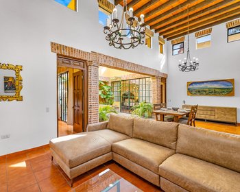 This beautifully designed 2-bedroom, 2-bath condo is located in an exclusive 12-unit gated community, offering the ease of single-level living. The home features spacious bedrooms, double-height ceilings, and abundant natural light throughout. An open-concept layout seamlessly connects the kitchen, dining, and living areas, all climate-controlled with mini-split systems.A standout feature is the stunning indoor courtyard, complete with a fountain, lush plants, and a retractable roof, creating a serene space to enjoy year-round. The condo also includes an attached one-car garage for added convenience.Residents enjoy exceptional amenities, including a heated outdoor pool, fully equipped gym, game room, separate laundry room, and a common rooftop terrace with breathtaking views of San Miguel de Allende’s city center.Ideally located in the Allende neighborhood, the community is within walking distance to Ancha de San Antonio, known for its cafés, restaurants, and supermarkets. Just outside the gates, you’ll find fruit stands, pharmacies, bakeries, and neighborhood convenience stores, making daily living both comfortable and convenient.
