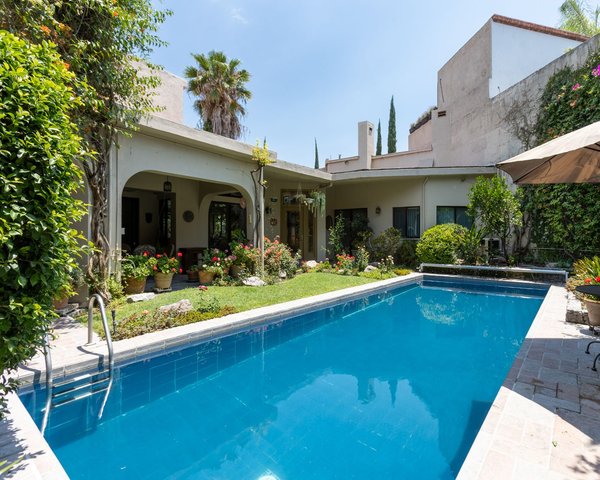 Descubra una oportunidad excepcional para adquirir una impresionante residencia ubicada en una de las zonas más cotizadas de San Miguel de Allende, justo frente al pintoresco Parque Guadiana. Esta hermosa casa cuenta con una variedad de características atractivas, lo que la convierte en la opción ideal tanto para familias como para inversionistas.La propiedad incluye cuatro espaciosas habitaciones, dos de ellas convenientemente ubicadas en la planta baja, lo que garantiza accesibilidad y comodidad. Además, cuenta con dos apartamentos independientes para invitados, perfectos para alojar visitas o generar ingresos por alquiler.Con un total de cinco baños y medio, esta casa ofrece amplias instalaciones tanto para residentes como para invitados. La funcional cocina está diseñada para la eficiencia y la facilidad de uso, mientras que el comedor y la sala de estar ofrecen espacios acogedores para la relajación y el entretenimiento.Salga a disfrutar de la encantadora piscina, ideal para refrescarse en los días cálidos, y aproveche los hermosos patios ajardinados que ofrecen un entorno sereno para reuniones al aire libre o momentos de tranquilidad para la contemplación. La casa está llena de luz natural, lo que realza su acogedor ambiente y enaltece el cuidado diseño de toda la casa, muchas características fueron inspiradas del aclamado Arquitecto Estadounidense Frank Lloyd Wright.Esta excepcional propiedad se completa con un garaje para dos autos, que brinda comodidad y seguridad.No pierda la oportunidad de adquirir esta excepcional casa, donde la comodidad y el estilo se unen en una ubicación privilegiada. Contáctenos hoy mismo para obtener más información o programar una visita.Precio de venta: $1,799,000 USD o su equivalente en pesos mexicanos.