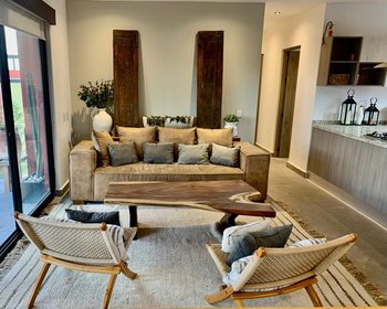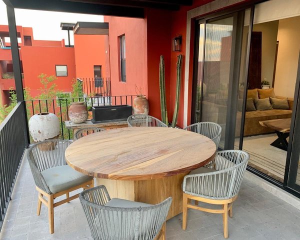 Hermoso Penthouse de 2 Recámaras en Venta en Punta del Cielo Ubicado en una de las comunidades privadas más solicitadas de San Miguel de Allende, este hermoso penthouse ofrece comodidad, vistas y una excelente ubicación dentro del desarrollo— a solo unos pasos de la entrada principal. El departamento cuenta con 2 recámaras y 2 baños completos, con elegantes acabados en cantera y una cubierta de granito en la cocina. Una de sus características más destacadas es el rooftop privado, perfecto para convivir o relajarse. Disfruta de terrazas techadas tanto en el departamento como en el rooftop, lo que permite una vida interior-exterior sin interrupciones. La propiedad se vende amueblada y está idealmente ubicada dentro de la comunidad, ofreciendo hermosas vistas de la ciudad y de exuberantes áreas ajardinadas que garantizan privacidad a largo plazo y una vista despejada. Los residentes de Punta del Cielo disfrutan de seguridad 24 horas, alberca climatizada, jacuzzis privados, áreas de asador y hermosos jardines con fuentes. El desarrollo también incluye una casa club totalmente equipada con amenidades premium como gimnasio, áreas de spa (vapor y sala de masajes), salón de usos múltiples, cava de vinos, snack bar, terrazas, canchas de pádel y tenis, y un área de juegos infantiles.