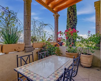 Bienvenidos a Casa Arie, una impresionante residencia de estilo colonial mexicano ubicada en el codiciado barrio de El Caracol en San Miguel de Allende. Diseñada con esmero y llena de encanto, la casa cuenta con tres amplias habitaciones con baño privado, complementadas por una casita independiente de dos habitaciones, ideal para invitados o para quienes deseen prolongar su estancia. Una majestuosa escalera y un ascensor privado conectan los espaciosos interiores, donde la vida interior y exterior se fusionan armoniosamente. Varias terrazas ofrecen vistas panorámicas de la ciudad, mientras que un tranquilo patio con fuente y un jacuzzi brindan espacios más íntimos para relajarse y desconectar. Con refinadas comodidades modernas y la calidez del diseño tradicional mexicano, Casa Arie ofrece un estilo de vida sofisticado y acogedor. Ubicada estratégicamente para disfrutar de algunas de las vistas más impresionantes de la ciudad, Casa Arie está diseñada para quienes disfrutan de apreciar la interacción entre la luz y el espacio, tanto en el interior como en el exterior. Los amplios ventanales y las terrazas cuidadosamente ubicadas permiten que la dorada luz del sol de San Miguel inunde cada rincón, ofreciendo una conexión constante con el exuberante entorno y las icónicas vistas del horizonte desde cada nivel. El corazón de la casa es una obra maestra del diseño, con altos techos bóveda y elegantes acabados que irradian una sensación de confort refinado. Los espacios habitables son perfectos tanto para veladas íntimas junto a la chimenea como para grandes recepciones, con acceso a terrazas que se convierten en santuarios privados para disfrutar del café matutino o de cócteles al atardecer. Cada habitación es un refugio en sí misma, que ofrece privacidad y tranquilidad. La suite principal, en particular, es un oasis de lujo, con jacuzzi y vistas que hacen que cada mañana se sienta como unas vacaciones. En toda la propiedad, encontrará el sello distintivo de la artesanía de alta gama, desde la carpintería a medida hasta la cantería artesanal, lo que garantiza que cada detalle sea tan funcional como bello. Casa Arie es más que una residencia; es un estilo de vida. Ya sea que busque una residencia permanente, una escapada de temporada o una excelente oportunidad de inversión, esta propiedad ofrece una combinación única de lujo moderno y la tranquilidad de la cima de una colina, todo ello a poca distancia de la vibrante energía del centro. Vive la magia de la vida en Casa Arie, donde cada rincón revela una nueva perspectiva de la belleza.