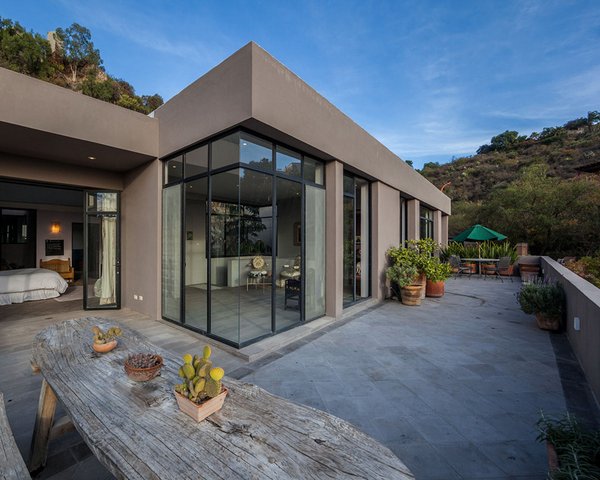 La casa de cuatro dormitorios y cuatro baños también incluye un gimnasio conveniente, varias terrazas al aire libre y dos patios acogedores desde donde disfrutar del exuberante entorno. Las plantas de jade, los mezquites y los huizaches añaden un toque exótico a los jardines que dan a un verde cañón.