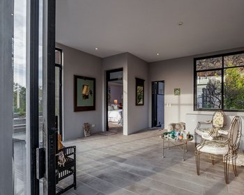 La casa en sí tiene una construcción de acero, habitaciones llenas de luz y ventanas del piso al techo que resaltan las hermosas vistas.