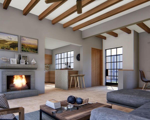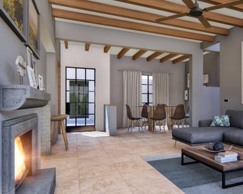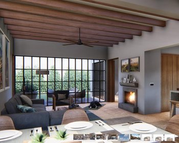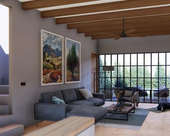 La planta baja cuenta con un diseño abierto pero con espacios muy definidos para la cocina, el comedor, la sala de estar, la escalera y una doble apertura en la oficina extra + baño. El espacio habitable es amplio y hermoso, con ventanas y puertas orientadas al sur y al norte para tomar sol y sombra al mismo tiempo.