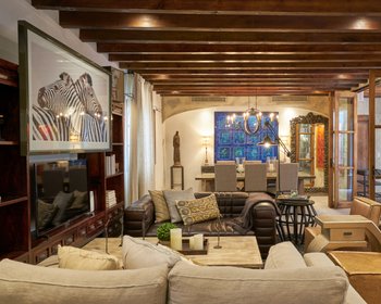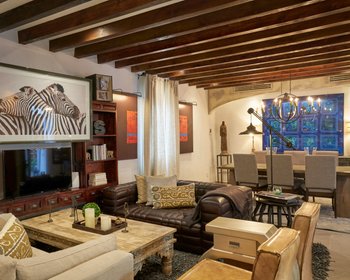 La casa se mantiene fiel a los mejores aspectos de la arquitectura mexicana, con pisos de cantera y chimenea de cantera tallada a mano en dormitorios y patios, reforzados con encimeras de granito y pisos de mármol.