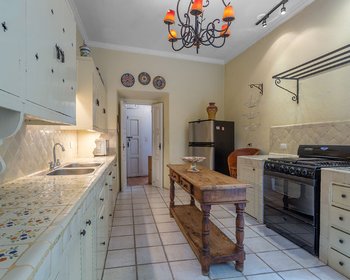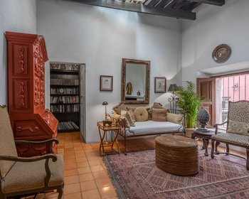 La parte principal de la casa es diseño colonial, tal vez data de unos 200 años, mientras que la parte trasera de la propiedad es una construcción más nueva. Con dos dormitorios en el nivel principal, que incluye una espaciosa suite principal con sala de estar, esta casa está diseñada para una vida cómoda. Cada una de las habitaciones tiene vistas al patio con vegetación y el sonido de la fuente. Arriba hay un segundo dormitorio principal con vistas a la amplia terraza con vistas directas al centro de la ciudad y a la Parroquia.