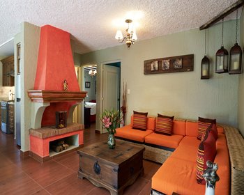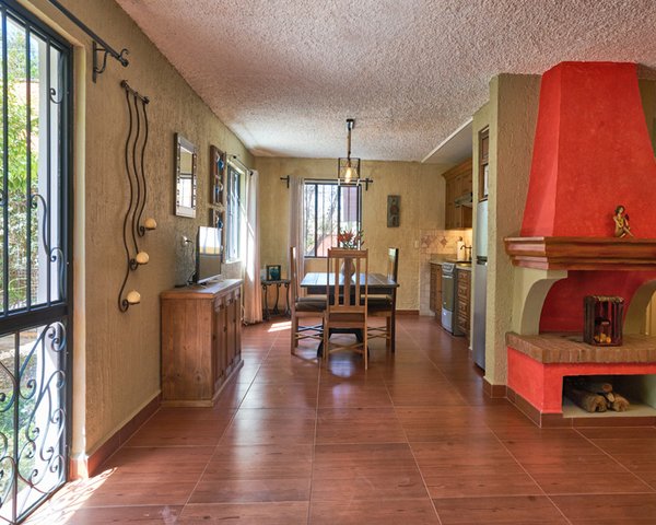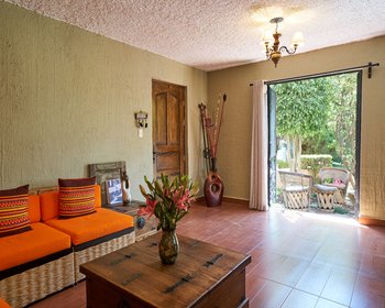 Dos recámaras, baño completo, diseño abierto de cocina, comedor y sala, es de una sóla planta enfrente de la alberca y del hermoso jardín.
