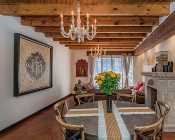 Hermosa casa estilo colonial mexicano, entrando a la casa, en el primer nivel encontramos un amplio dormitorio principal con su baño completo, luego se abre a un patio interno central con 2 fuentes, al lado está la espaciosa cocina abierta / salón / comedor con una gran chimenea y techo con vigas de madera y un patio exterior que da un toque especial a la parte posterior de la casa, todos los acabados en pisos son de cantera, techos de tejamanil y techos bóveda en toda la casa, en el segundo piso son 2 dormitorios, cada uno con su baño y walk-in closet, y en el tercer piso, dos hermosas terrazas, una con vistas a las montañas y la otra con un espacio encantador para el entretenimiento al aire libre con baño y parrilla con vistas majestuosas de la ciudad, y la magnífica Iglesia de San Antonio.