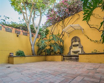 El patio trasero es íntimo y tiene una fuente de cantera y árboles maduros. Con poco más que un diseño inteligente y pintura, esta casa será un lugar cómodo que podrá llamar hogar, y su ubicación, a solo una cuadra de Mercado Sano y algunos de los mejores restaurantes de San Miguel, la convierte en una propiedad perfecta para alquilar.