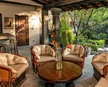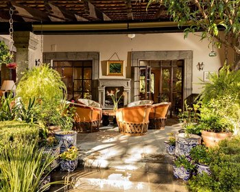 La gran terraza de la azotea está rodeada por las copas de los árboles del Parque Juárez y vislumbres de iglesias. Es un lugar maravilloso para disfrutar de las brillantes puestas de sol de San Miguel.
