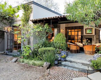 En el exterior, una gran terraza cubierta con una chimenea Cantera tradicionalmente tallada y una zona de bar da a los jardines.