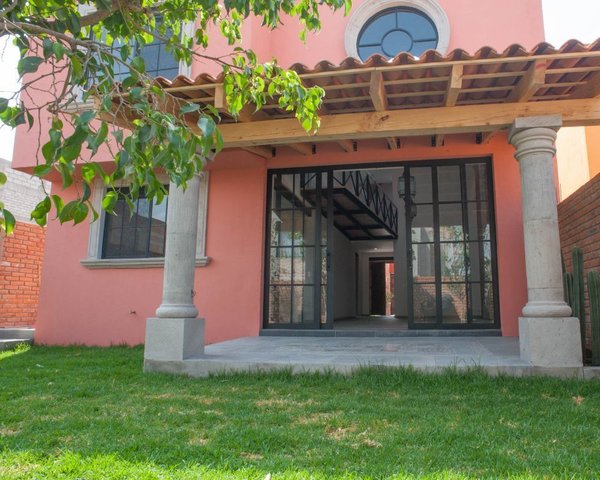 Casa moderna con toques Sanmiguelense, detalles en madera y grandes bóvedas, espacios luminosos y bello jardín con arboles ficus, amplia cocina funcional y moderna, tres recamaras con baños muy amplios y un estudio que te lleva a la imaginación.