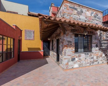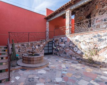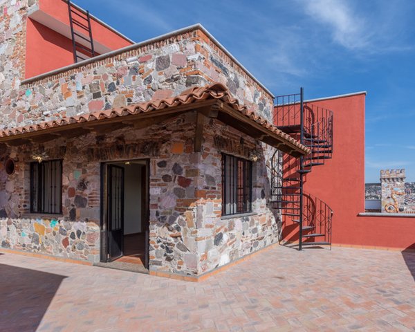 La casa tiene techos de bóveda, vigas de madera, piso de talavera y acabados de carpintería rústica.