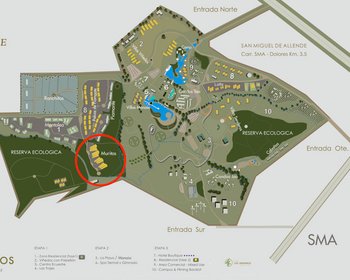 Villas Muros se encuentra en el Valle de Los Senderos, a solo 5 kms. del centro de San Miguel de Allende en un valle de 125 hectáreas, la primera comunidad diversa de uso mixto en San Miguel de Allende, basada en el desarrollo sostenible enfocado al diseño innovador y a el espíritu humano creativo.