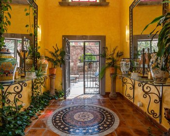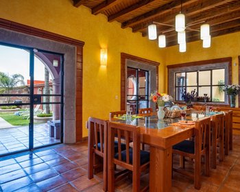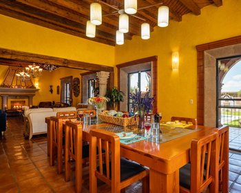 Un hogar ideal para el entretenimiento, la propiedad amurallada Casa Colina de 20 años de antigüedad (ventanas abiertas en los cuatro lados, una rareza en San Miguel) cuenta con un gran gran estilo americano sala con mesa de comedor para 14 personas que se abre a una terraza cubierta con vista al área de césped y piscina, lo que permite un entretenimiento perfecto en interiores y exteriores y un estilo de vida inigualable. Una gran suite principal en la planta baja, con baño con dos lavabos y vestidor, hace posible vivir en un nivel en esta casa, aunque el diseño se adapta fácilmente a un ascensor en el atrio central. Tres habitaciones en el piso superior, todas con terraza con vista al cañón a larga distancia, están unidas por una sala multimedia y un segundo baño de tocador, mientras que un apartamento separado para el servicio de limpieza, que no se incluye en el número de habitaciones, se encuentra junto al garaje para cinco autos. El patio de entrada alimentado por el acueducto y anclado por una fuente puede albergar una banda de mariachis en un escenario elevado, con espacio para una mesa de registro para seis personas. Si la recaudación de fondos o el entretenimiento son su pasión, ¡esta casa se adapta a su mayor fantasía!