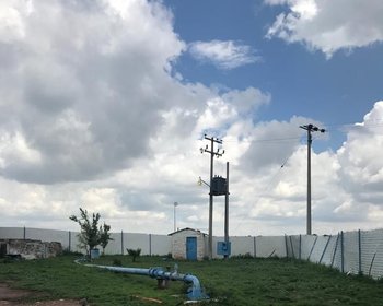 Pequeñas construcciones alrededor del pozo, incluyendo unos corrales, bodegas y casa del velador, encerradas con malla ciclónica.