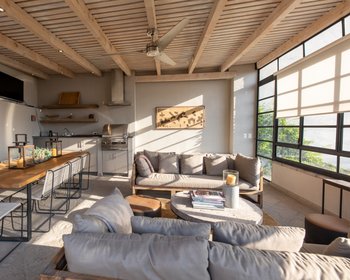 El segundo piso tiene una sala de estar comedor con cocina y un gran ventanal que ofrece una vista panorámica del paisaje urbano. Las mañanas o las tardes son ideales para relajarse o entretenerse en la terraza cubierta, una segunda sala de estar con mesa de comedor, parrilla, TV y otra vista cautivadora de San Miguel.