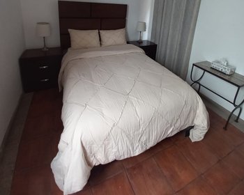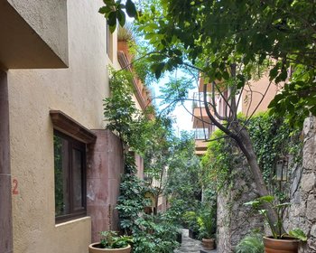 Hermoso departamento completamente amueblado . En el exclusivo condominio Arcangeles en el Centro de San Miguel . Dos recámaras cada una con baño completo .Cuenta con sala y comedor y terraza y cocina bien equipada . Cuarto de lavado con lavadora y secadora El condominio cuenta con vigilancia las 24 hrs , alberca y jacuzzi y estacionamiento para dos autos . A solo unos pasos de la calle de Correo
