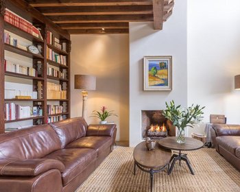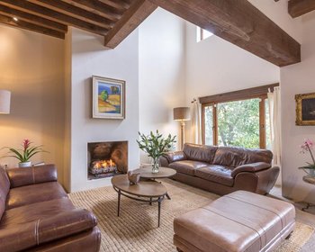 Una recámara en el primer nivel y dos más en el segundo piso, todas con baño completo y un estudio. Amplia sala de estar con chimenea de gas y un comedor que se abre a un patio exterior y a un soleado jardín. Toda la cocina equipada, lavadero y despensa.