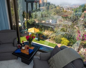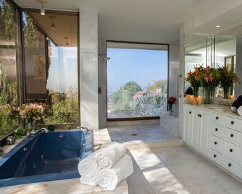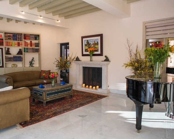 ¡Esta es una finca para el entretenimiento, ya sean familias numerosas o grandes eventos! Mientras que la suite principal con control mini-split se encuentra en el nivel de la planta baja sin escalones, y ofrece esas mismas vistas espectaculares desde su almohada o la bañera, cinco habitaciones más con baño rodean las terrazas del jardín inferior y el césped de la piscina, al igual que el bar y sala de juegos. La sala de estar de doble altura completamente de vidrio y el comedor con techo de bóveda se unen a una biblioteca anclada con un piano de cola, todas con chimeneas (la casa ofrece nueve de ellas y un pozo para fogatas en la azotea), mientras que la enorme cocina con cubierta de granito, con hornos dobles y estufas dobles, y desayunador junto a una cocina al aire libre con ahumador Texas, parrilla y freidora. Arriba, la terraza de la azotea incluye otro bar, brasero, baño de polvo y una fuente con cascada de dos pisos.