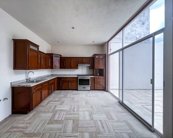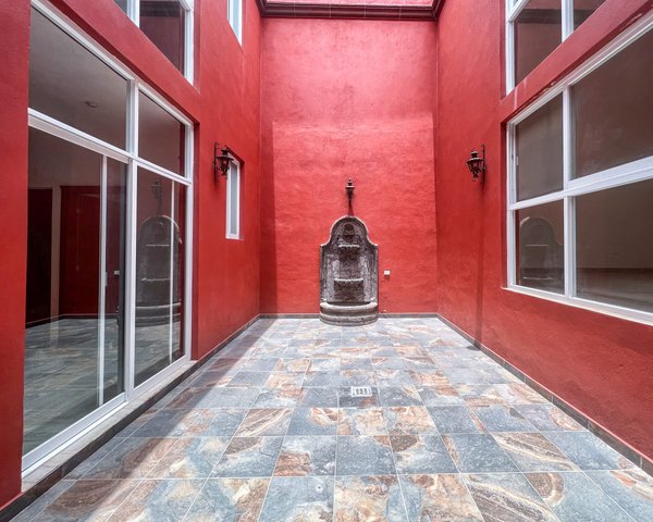 Recientemente construida, la casa se centra alrededor de un hermoso patio con una hermosa fuente de agua. Todas las habitaciones tienen inmensos ventanales que dan al patio. Hay cuatro dormitorios, todos equipados con grandes armarios y baños privados. Dos dormitorios se encuentran en la planta baja y dos en el segundo piso.