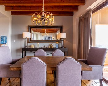 Desde su posición privilegiada en la segunda fase, este edificio de 220 metros cuadrados, El condominio de dos habitaciones y dos baños y medio tiene vistas imponentes del centro y amplios panoramas de las cadenas montañosas circundantes. -Construcción Capilla de Piedra— conjunto cerrado con seguridad las 24 horas.