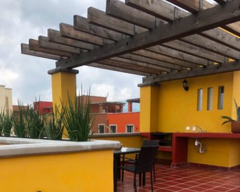 Casa de 3 níveles en planta alta , con un roof enorme y medio baño