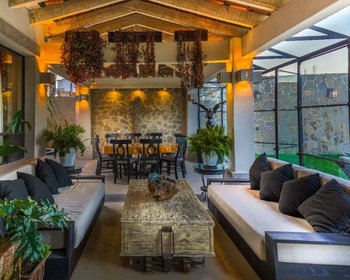 En el exterior encontrarás un amplio jardín con alberca, área de asador techada. Igualmente, un elegante desayunador exterior techado, cerrado con cristales para disfrutar la vista, con una extensión donde hay una cómoda sala para esa área exterior.
