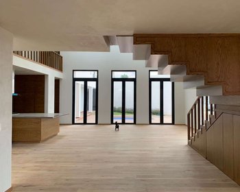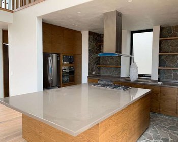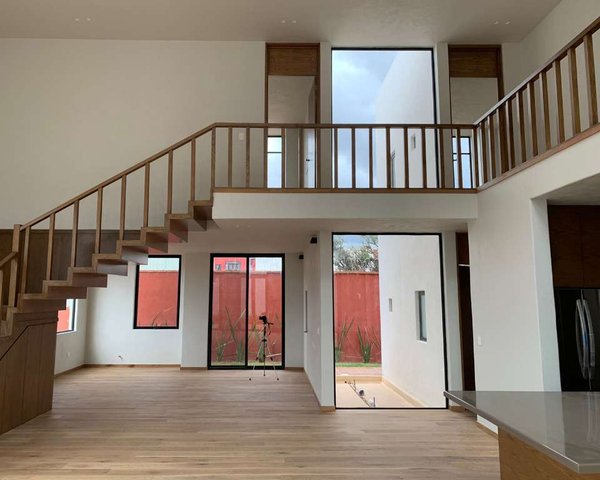 El área de sala, comedor y cocina en planta baja son abiertas e inundadas de luz proveniente de ventanales y tres tragaluces que en consecución con las ventanas que dan al jardín generan un ambiente de calidez y paz en estas áreas. La parte del comedor junto con la escalera de madera cuentan con una doble altura que da la sensación de amplitud y lujo