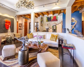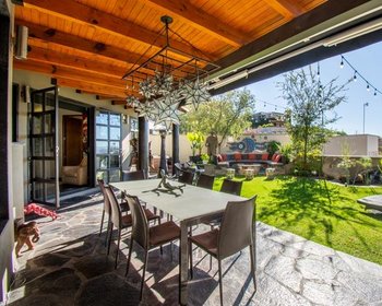 Luego, regrese a la parte superior de la escalera y salga a otra terraza privada con su propia escalera al tercer piso donde se sorprenderá con las vistas aún más gloriosas de San Miguel. El siguiente es el comedor al aire libre cubierto que lo lleva a una acogedora "choza de ella" zen, un retiro del estrés de la vida.