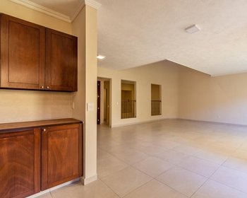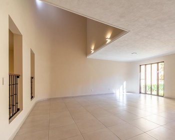 Pasando el vestíbulo, hay una amplia área social que se conecta a las escaleras y la cocina. El salón tiene una doble altura rematado con un hermoso techo de bóveda. El comedor y la cocina tienen mucha luz natural ya que dan a un cuidado jardín.