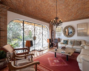 La casa tiene excelentes vistas a las montañas cercanas y el interior está lleno de luz. Tiene un jardín increíble, sala/comedor abierto con techos de bóveda y cocina con mucho espacio de almacenamiento.