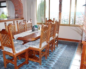 Unico y espectacular conjunto en la colina con vistas inigualables. La casa principal tiene una gran recamara con estancia, baño y vestidor; ademas de una segunda recamara. Ambas recamaras tienen terraza par aver los atardeceres. Un nivel abajo está el area de “entretenimiento”, con Jacuzzi y asador. A través del jardin hay 2 departamentos con dos recamaras cada uno, que comparten el patio. Súmale a todo esto, un taller, dos oficinas, espacio para 4 autos. En fin!! Un perfecto sitio para tu lugar familiar o un B&B como negocio. Los precios mencionados estan en dolares americanos.