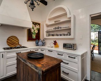 La sala de estar llena de luz con chimenea de gas, barra y medio baño tiene puertas que se abren hacia el interior. a un segundo patio. El comedor también tiene puertas que se abren a este segundo patio, lo que hace que los espacios sean perfectos para la vida interior y exterior. La cocina está bien equipada y flanquea el comedor.