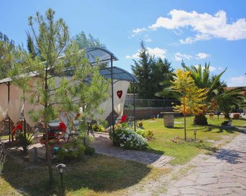 El viñedo se beneficia de un sistema de riego eficiente. El restaurante ofrece un área abierta expansiva completa con un bar y una cocina, un escenario perfecto para servir su capacidad de 20 ganas, e incluye medio baño y un filtro de agua dedicado. En particular, la construcción muestra una base resistente compuesta de ladrillo, baldosas y madera.