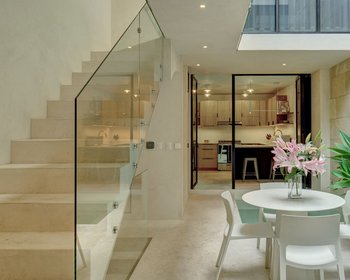 Una sinfonía de piedra, vidrio y aire, esta joya arquitectónica te invita a experimentar la vida moderna mexicana en su máxima expresión. Bañada por la luz natural, la casa se revela en capas, desde un sereno patio hasta escaleras escultóricas, pasando por espacios fluidos interior-exterior y acentos artísticos. Entra a una luminosa sala de doble altura, donde las paredes de cantera cremosa se elevan junto a imponentes ventanales de vidrio, enmarcando un exuberante jardín de patio con cactus y agave. Grabados art déco y muebles modernos refinados completan una escena de sofisticación urbana arraigada en la naturaleza. A pocos pasos, un tranquilo patio central cobra vida con una piscina pequeña y una fuente, que resuena suavemente contra la piedra, ideal para la meditación, la conversación o una tarde de descanso. El área de comedor abierta y la cocina moderna y elegante fluyen alrededor de este oasis interior, creando un espacio habitable que respira luz y calma. La escalera escultórica con barandales de vidrio conduce a una suite principal privada, que ofrece una estética cálida y moderna con ventanas de piso a techo, baño en suite, amplio espacio de clóset y vistas elevadas sobre el patio. Cada espacio en la casa está diseñado para conectar la belleza con la funcionalidad, ya sea el baño con iluminación suave y gabinetes a medida, o el acogedor estudio suspendido sobre la sala. Por encima de todo, una terraza en la azotea espera, perfecta para observar las estrellas, recibir invitados o la reflexión tranquila. Un estudio iluminado por el sol o una habitación de huéspedes corona la casa, ofreciendo un espacio flexible para la creatividad o el confort. Un nivel adicional en el sótano proporciona amplio almacenamiento y alberga los sistemas de la casa, manteniendo todo organizado y fuera de la vista. Esto no es solo una residencia, es un santuario moderno, un hogar diseñado para la elegancia sin esfuerzo y la vida artística. Ubicada con gracia en la tranquila calle Ánimas, esta casa se encuentra a solo pasos del Jardín, la iglesia Parroquia, la Fábrica La Aurora, encantadores cafés, restaurantes de alta cocina y toda la magia atemporal de San Miguel de Allende.