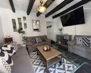 La acogedora casa principal está lista para moverse y cuenta con dos habitaciones de tamaño generoso, ambas situadas en el piso superior. El dormitorio principal cuenta con balcones encantadores con vistas a la calle, agregando un delicioso toque de carácter. La cocina y el comedor de concepto abierto proporcionan un diseño cómodo y funcional, perfecto para la vida moderna. En la parte trasera de la casa, encontrará un pequeño patio que sirve como área de lavandería dedicada.