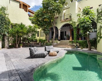 This property, located at Tercera Cerrada de Pila Seca #9 in San Miguel de Allende, is listed at $2,250,000 USD for the real estate alone, with the option to purchase the furniture, restaurant and bar equipment, trade fixtures, inventory, and hotel accessories at an additional Costo.