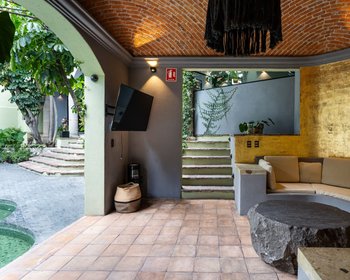 En el centro de la propiedad se encuentra un patio común con una piscina con amplia sala de estar. Adyacente a la piscina hay un área cubierta separada, que proporciona un punto focal tranquilo para los invitados. The layout and amenities make this an ideal investment for continuing the existing hospitality business or converting it into a private residence with income potential from rentals.
