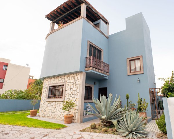 Ubicada en la tranquila comunidad privada de El Capricho, esta casa de 3 recámaras, 3 baños completos y 2 medios baños ofrece una combinación perfecta de confort, privacidad y espectaculares vistas de San Miguel de Allende. A solo 7 minutos en coche del Centro y a 10–15 minutos de todos los puntos clave de la ciudad, Casa Capricho Azul combina conveniencia con serenidad. Características principales: •Diseño espacioso: Techos altos en toda la casa que crean una sensación de amplitud y luminosidad. •Tres terrazas: Ideales para convivir o relajarse, incluyendo una terraza en la azotea con jacuzzi y vistas panorámicas impresionantes de la icónica Parroquia de San Miguel. •Sistemas actualizados: La casa cuenta con un sistema de filtración de agua en toda la propiedad, calentador de agua instantáneo bajo el fregadero y plomería renovada recientemente para mayor tranquilidad. •Comodidades modernas: Minisplits en las recámaras superiores, electrodomésticos incluidos (refrigerador, lavadora y secadora) y hermosas luminarias en toda la casa. •Vida exterior: Un jardín perimetral con vegetación madura que brinda privacidad y encanto. Interiores destacados: •Una sala cálida y acogedora con chimenea de cantera y abundante luz natural. •Amplia cocina con cubiertas de granito, gabinetes a medida y mucho espacio de preparación, perfecta para cocinar y recibir invitados. •Recámaras de tamaño confortable con amplios clósets. •Baños elegantes con acabados artesanales, dobles lavabos y tina de hidromasaje. Comunidad: El Capricho es una comunidad privada relajada y segura con vigilancia 24/7. Su ambiente tranquilo la convierte en una de las favoritas para quienes buscan lo mejor de ambos mundos: cercanía al Centro con un entorno residencial sereno. ✨ Casa Capricho Azul ofrece el estilo de vida ideal en San Miguel: comodidad moderna, detalles encantadores y vistas incomparables, todo dentro de una comunidad segura y conveniente.