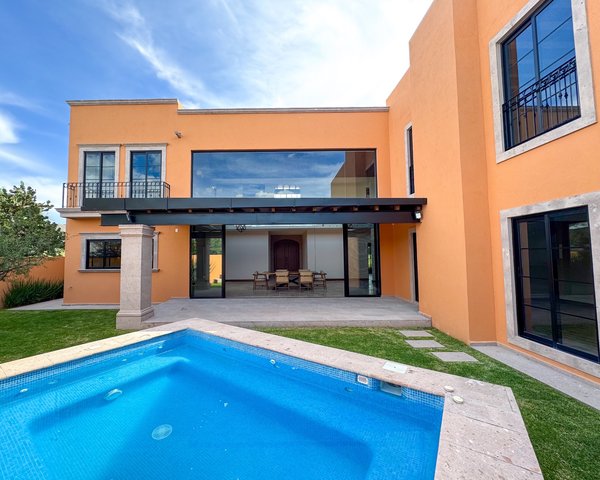 Nueva casa en Vista Antigua Esta nueva casa de dos pisos en Residencial Vista Antigua combina el confort moderno con un estilo atemporal en una de las comunidades cerradas más deseadas de San Miguel de Allende. Diseñada tanto para la vida familiar como para el entretenimiento, la propiedad ofrece una combinación ideal de espacios sociales abiertos, retiros privados y comodidades al aire libre. En el nivel principal, encontrará dos amplios dormitorios con baños en suite, perfectos para invitados o aquellos que prefieren vivir en un solo nivel. El corazón social de la casa incluye una sala de estar llena de luz con chimenea de gas, un amplio comedor y una moderna cocina de chef con acabados de calidad y abundante espacio de almacenamiento. Estos espacios fluyen a la perfección hacia la terraza cubierta, el jardín y la piscina climatizada, creando un verdadero estilo de vida interior y exterior. Un cuarto de lavado y un dormitorio de servicio con baño propio completan la funcionalidad del primer piso. El segundo nivel cuenta con tres dormitorios adicionales, cada uno con su propio baño en suite, lo que brinda privacidad y comodidad para familiares o visitantes. Los techos altos, la luz natural y los detalles bien pensados ​​hacen que estos espacios sean elegantes y acogedores. La casa incluye 6,5 baños, estacionamiento privado con portón eléctrico y está ubicada directamente frente a un área verde bellamente ajardinada con bancos, que ofrece una extensión tranquila de los espacios al aire libre de la propiedad. La ubicación privilegiada de Vista Antigua significa que se encuentra a poca distancia en automóvil del Centro y a solo 3 minutos del Ventanas Golf Club, lo que lo hace conveniente para disfrutar de lo mejor de San Miguel. Con su construcción de alta calidad, diseño inteligente y acabados elegantes, esta propiedad es igualmente adecuada como casa familiar, retiro de vacaciones o inversión. La casa también se puede vender completamente amueblada con muebles nuevos, y el precio se ajusta en consecuencia.