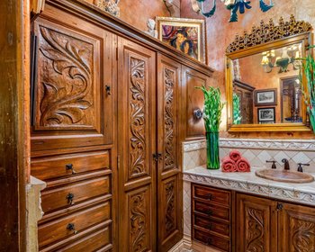 El histórico San Miguel de Allende cuenta con muchas residencias únicas, ¡pero ninguna iguala el esplendor arquitectónico de Casa Lagerfeld! Nombrado en honor a la casa favorita de Lagerfeld, Villa la Vigie, comparte la misma altura del promontorio (aquí ofrece vistas del Centro de la Parroquia en lugar de Mónaco) y el mismo estilo de diseño internacional por el que Lagerfeld era tan famoso. Casa Lagerfeld ofrece los acabados más exclusivos que se pueden encontrar en San Miguel, desde acabados de paredes personalizados hechos a mano, pisos estarcidos, murales etruscos personalizados, techos con bóvedas de arista, intrincados tallados antiguos en madera india, azulejos especiales en relieve, cantera tallada a medida y una gran cantidad de gabinetes, muebles empotrados y chimeneas personalizados, uno de los cuales es un sorprendente Biedermeier del maestro artesano de renombre local Manuel Padrón, cuyo trabajo solo en esta casa llevó más de un año. Ofreciendo principalmente una vivienda de un solo nivel (solo los dormitorios de invitados y la sala multimedia ocupan el nivel inferior), los visitantes ingresan a través de un exuberante jardín lineal subiendo una suave gran escalera de piedra de cantera que tiene un recorrido lo suficientemente largo como para convertirse en una rampa para un futuro acceso para sillas de ruedas, si se prefiere. El vestíbulo con bóveda de arista cautiva a los visitantes desde la primera impresión con paredes pintadas a mano, pisos estampados a medida y una elaborada lámpara de araña Fisher Wiesman con pan de oro. La suite principal ocupa su propia ala en la casa y cuenta con una enorme chimenea de cantera, balcones dobles con vista a la ciudad y al jardín, muebles empotrados, área para sentarse, baños para él y para ella y vestidores separados, ¡el mejor salvador de matrimonio jamás inventado! La sala de estar con chimenea doble, techos con vigas estampadas y ménsulas de 14 pies y tratamiento de tejamanil enrejado, ofrece dos juegos de puertas francesas de madera de gran tamaño que se abren a la terraza exterior con vista a la ciudad, mesa de comedor para 12 personas y área de entretenimiento, mientras que la cocina independiente es enorme y cuenta con una isla, refrigerador Sub Zero, hornos dobles, cafetera espresso Miele incorporada y DCS de 8 quemadores. estufa y garaje para electrodomésticos, todos con acceso a un patio adyacente con acceso al garaje y lavandería. El grandioso comedor para 12 personas con piso de madera cuenta con una asombrosa vidriera personalizada opcional hecha en Chicago, un refrigerador para vinos Haler y dos calentadores incorporados Rinnai. Completando este nivel se encuentra la oficina en casa más asombrosa que jamás haya experimentado, completa con baño completo y capaz de servir como un quinto dormitorio, rodeada de gabinetes de consola personalizados, un mural etrusco opcional (es decir, removible) de pared a pared, una enorme chimenea de vidrio tallado a medida y un balcón. El nivel inferior ofrece dos amplias habitaciones para invitados con baño, cada una de las cuales se abre a los jardines a través de puertas francesas de madera de vidrio biselado, y una asombrosa sala multimedia con bar, rodeada de antiguas pantallas indias de madera talladas a mano, repletas de techos hechos a mano e iluminación artística en toda la periferia, prepara el escenario para el maharajá más cinematográfico. ¿Espacios al aire libre? ¡Puedes apostar! Cada visitante experimenta el exuberante jardín lineal de entrada tropical al llegar, pero luego, al pasar bajo un mágico puente de arco de piedra, se ingresa al jardín secreto privado, anclado a una fuente, junto a un dormitorio de invitados. Se accede a la casita con entrada independiente del piso principal a través de un patio con estanque tropical koi, luego la escalera en cascada lo conduce a la enorme terraza en la azotea con vista a toda la ciudad, poblada con múltiples cúpulas con cubierta de cobre, repleta de bañera de hidromasaje con vista a la Parroquia, enorme fuente de cantera, cocina completa con barbacoa y barra con fregadero, y sofás columpios con pérgola cubierta. Si no estás en el techo todas las noches al atardecer, ¡no estás viviendo la dulce vida! Karl siempre decía “La vanidad es lo más saludable de la vida…” y la propiedad que lleva su mismo nombre es un homenaje a la vanidad del diseño, un ejemplo paralelo de gusto exquisito. Rocíe un poco de Bois de Vétiver, levante esos gruesos tonos oscuros y únase a mí para un recorrido inolvidable. Le serviré una de las Coca-Colas Light de edición limitada de Karl (es lo único que bebía, ¡diez al día!) O abriremos el champán, como solían hacer los amigos de Karl. Esta es una finca que te dejará sin aliento, ¡yo también tendré oxígeno, por si acaso!