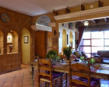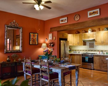 finishes, Mexican-style décor, and vaulted ceilings that create a sense of openness,
